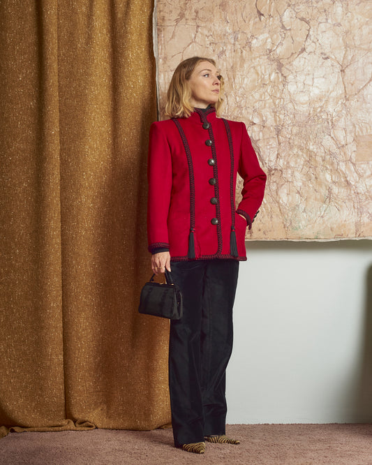 Giacca Yves Saint Laurent fw 1993-1994 in lana e alpaca con nappe