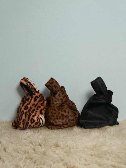 Borsa a sacchetto in pelle di cavallino maculato