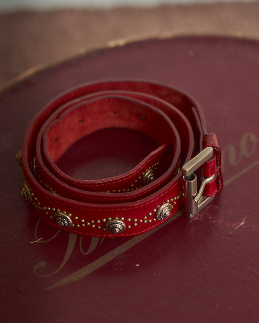 Cintura in pelle rossa con borchie