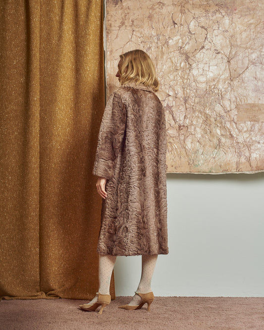 Cappotto in pelliccia astrakan anni 60 rosa cipria