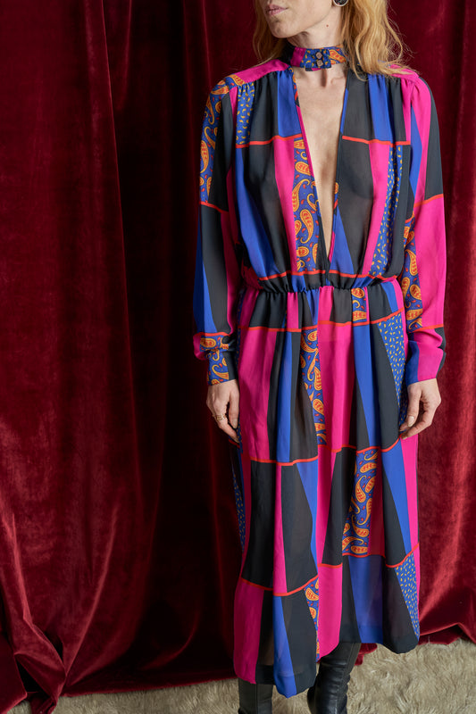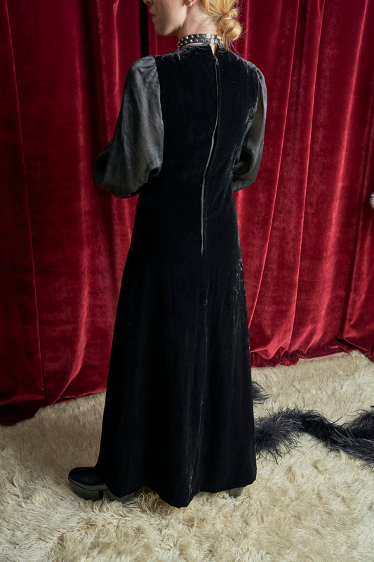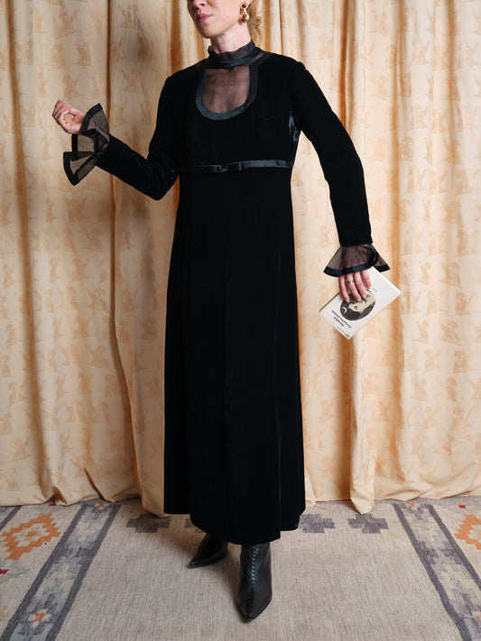 Abito anni 70 fatto a mano sartoriale in velluto e seta