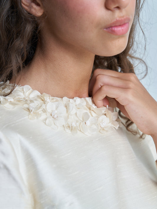 Abito da Sposa anni 60 in shantung di seta e fiori applicati