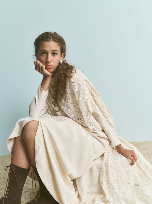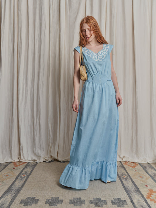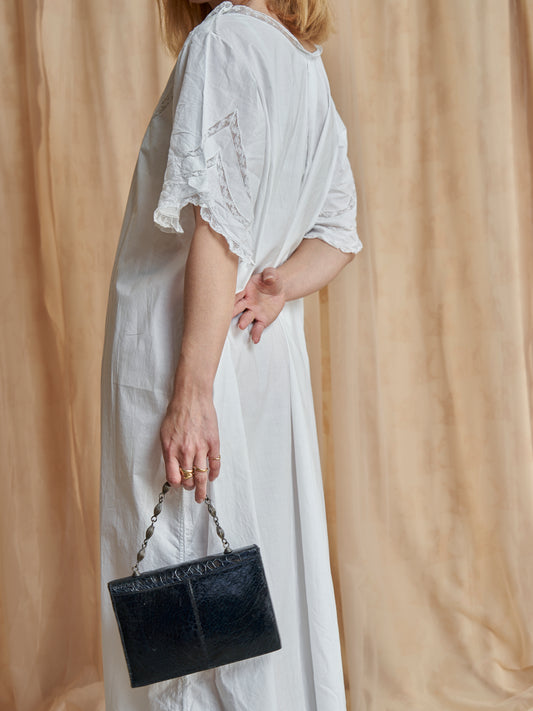 Abito antico da notte in puro cotone con pizzo antico ricamo
