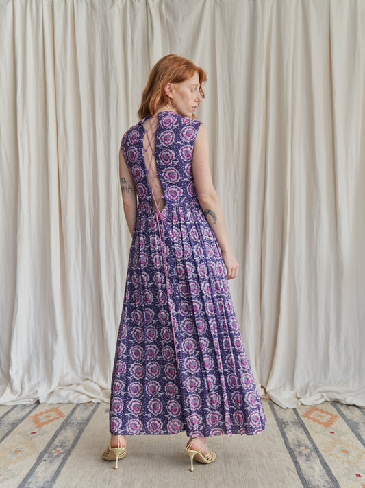 Abito anni 50 in cotone fantasia gonna ampia e lace-up dietro