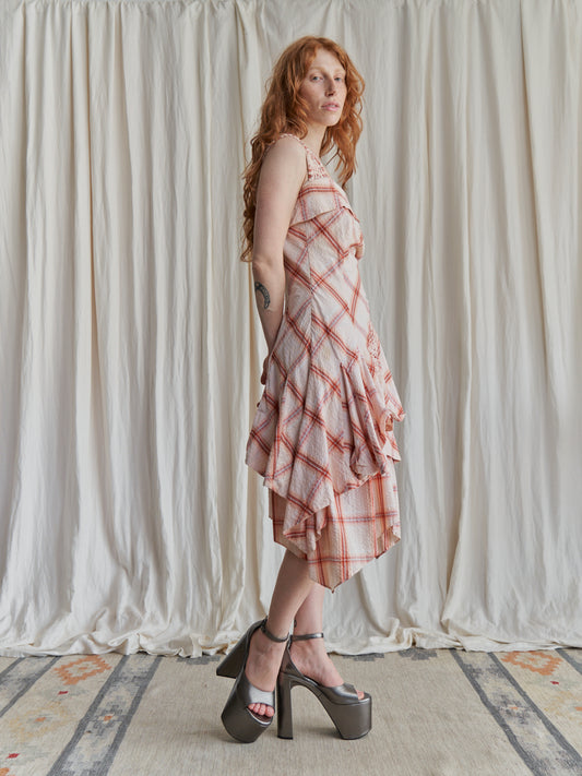 Abito Antonio Berardi ss1997 intrecciato a mano con balze a palloncino