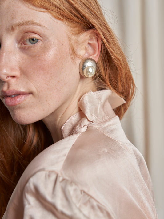 Orecchini anni 80 a clip a margherita galvanica oro e color granato