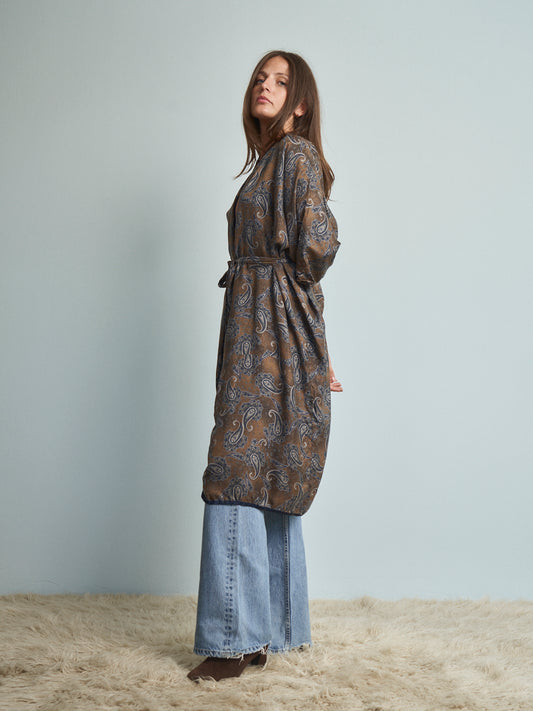 Vestaglia da uomo in seta twill pura, con cinta motivi cachemere
