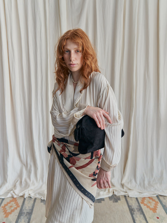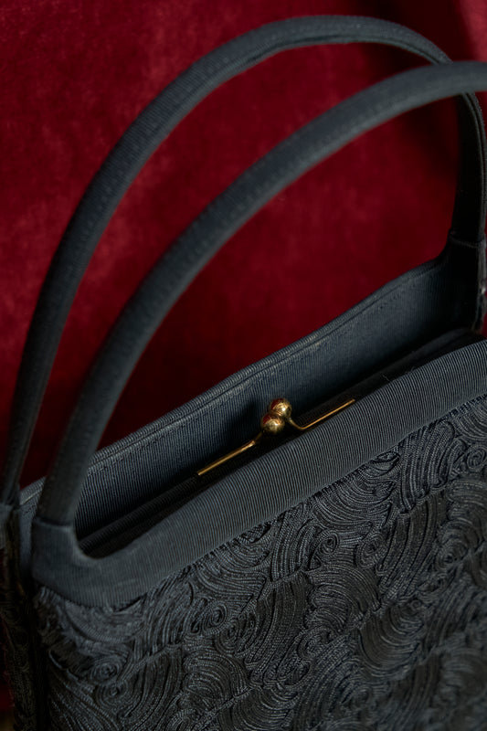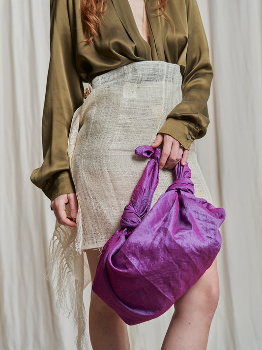 Borsa a mano in seta schantung e velluto stampato fibbie