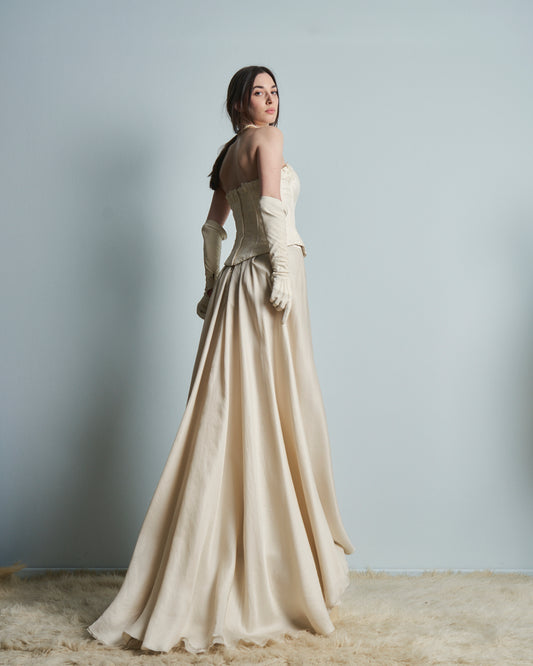Abito da sposa bustino ricamato e gonna in pura seta anni 90