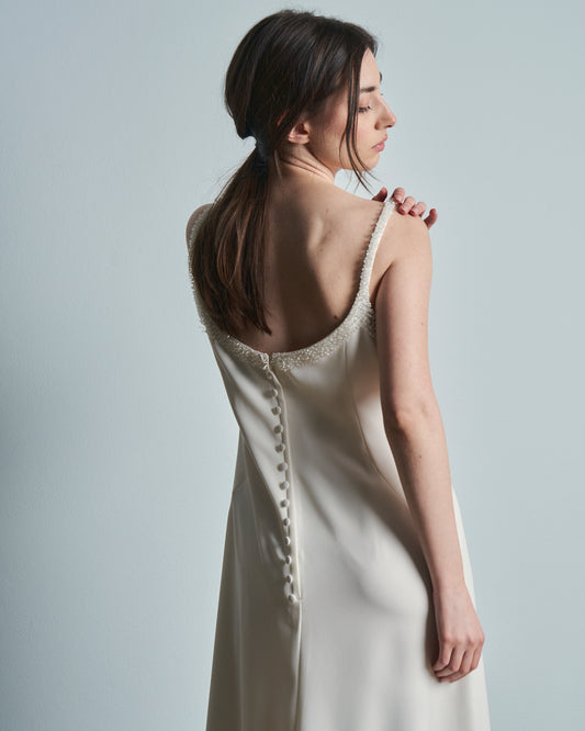 Abito da sposa o da sera con ricami e perline in pura seta
