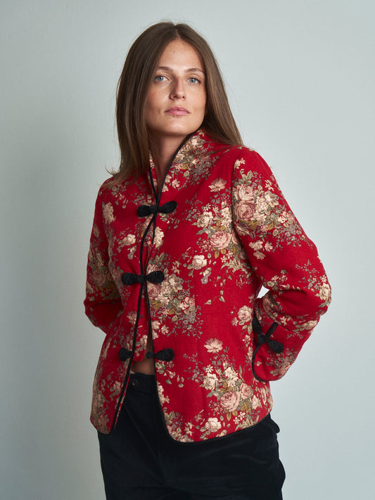 Giacca rossa modello asiatico rossa imbottita con inserti neri