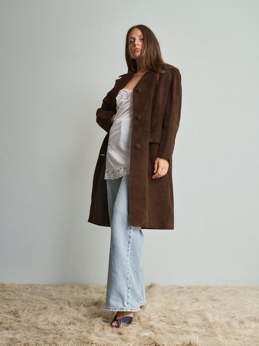 Sold outGiacca Lunga camoscio marrone