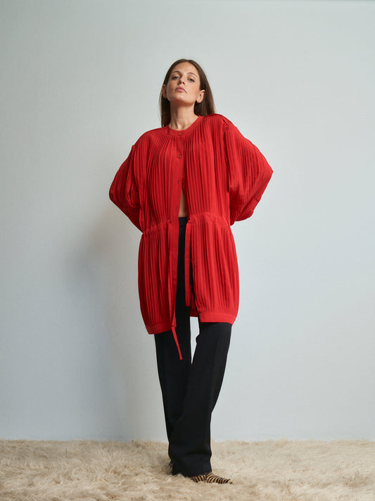 Giacca in tessuto plissettato con coulisse in vita girocollo