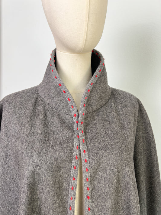 Mantella anni 80 sartoriale in lana con profili e bottone