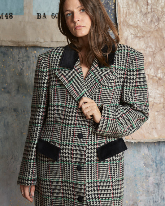 Giacca in lana Pied-de-poule con collo in velluto nero