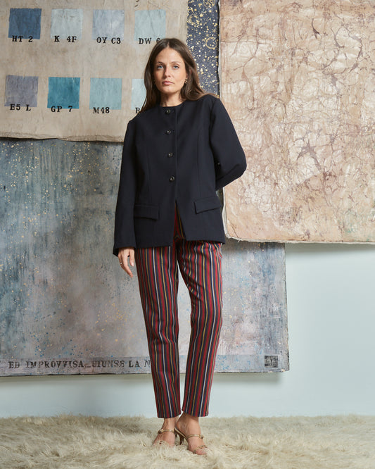 Giacca anni 70 in lana blu navy girocollo bottoni caramella