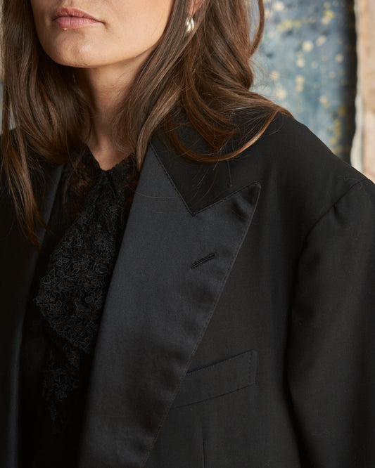 Blazer da Smoking nero in lana con collo lancia