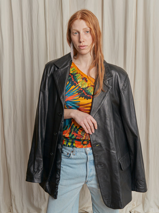 Giacca rever in pelle nera taglia L\XL