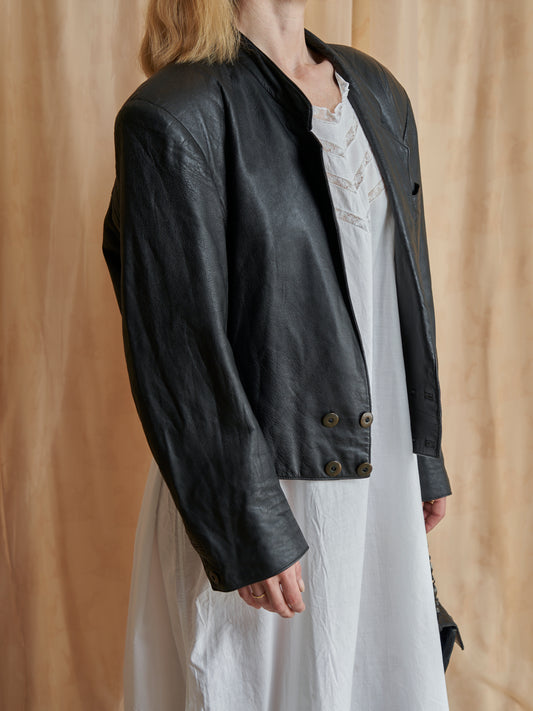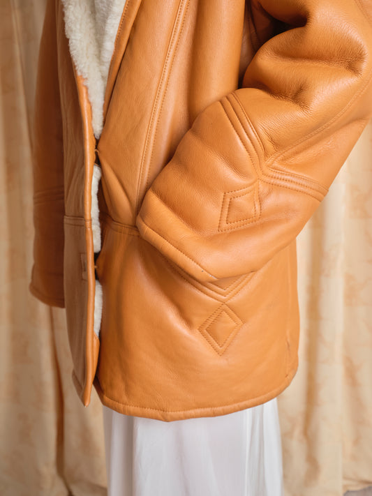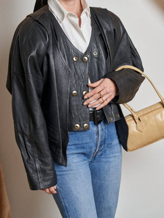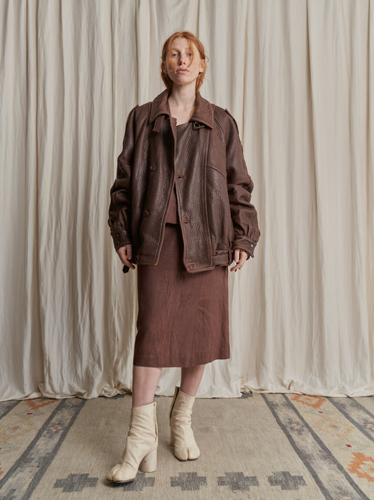 Bomber in pelle marrone made in Italy anni 80 over con fibbie