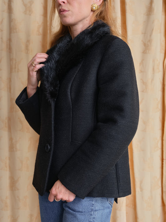 Cappotto vintage SCHERRER modello pennylane con manicotti e collo pelliccia