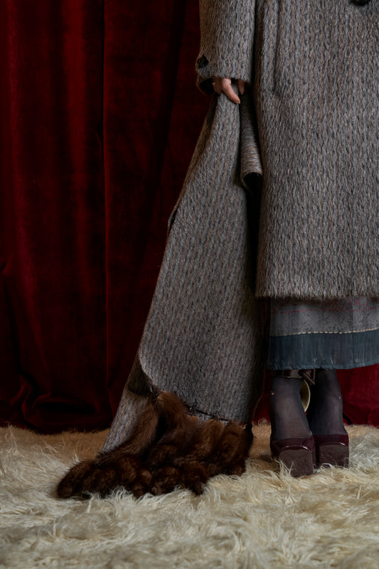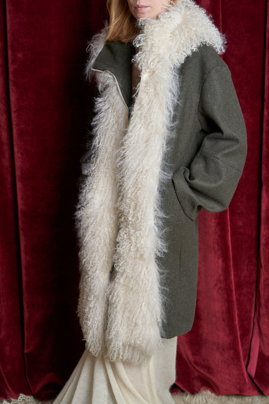 Cappotto con cappuccio e profili in mongolia made in Italy