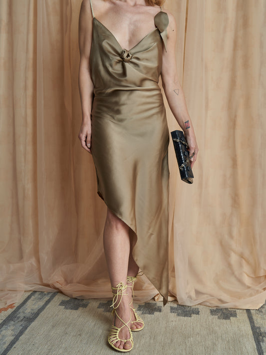 Abito sartoriale in seta realizzato da Montanaro Vintage taglio sbieco asimmetrico