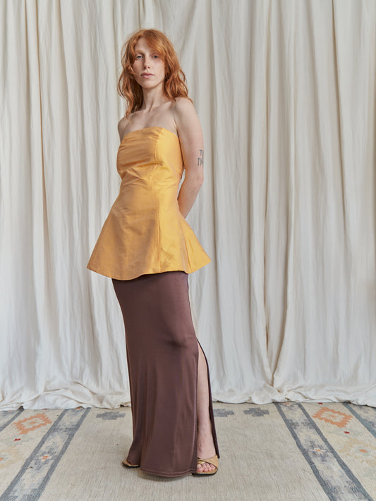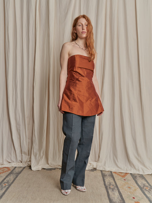 Top in seta sartoriale senza spalline realizzato da Montanaro Vintage