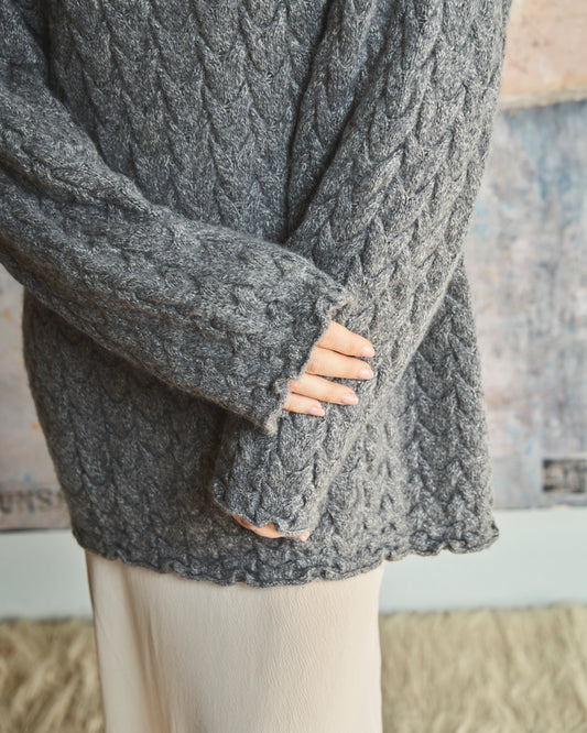 Maglione in cachemere scozzese a trama intrecciata grigio