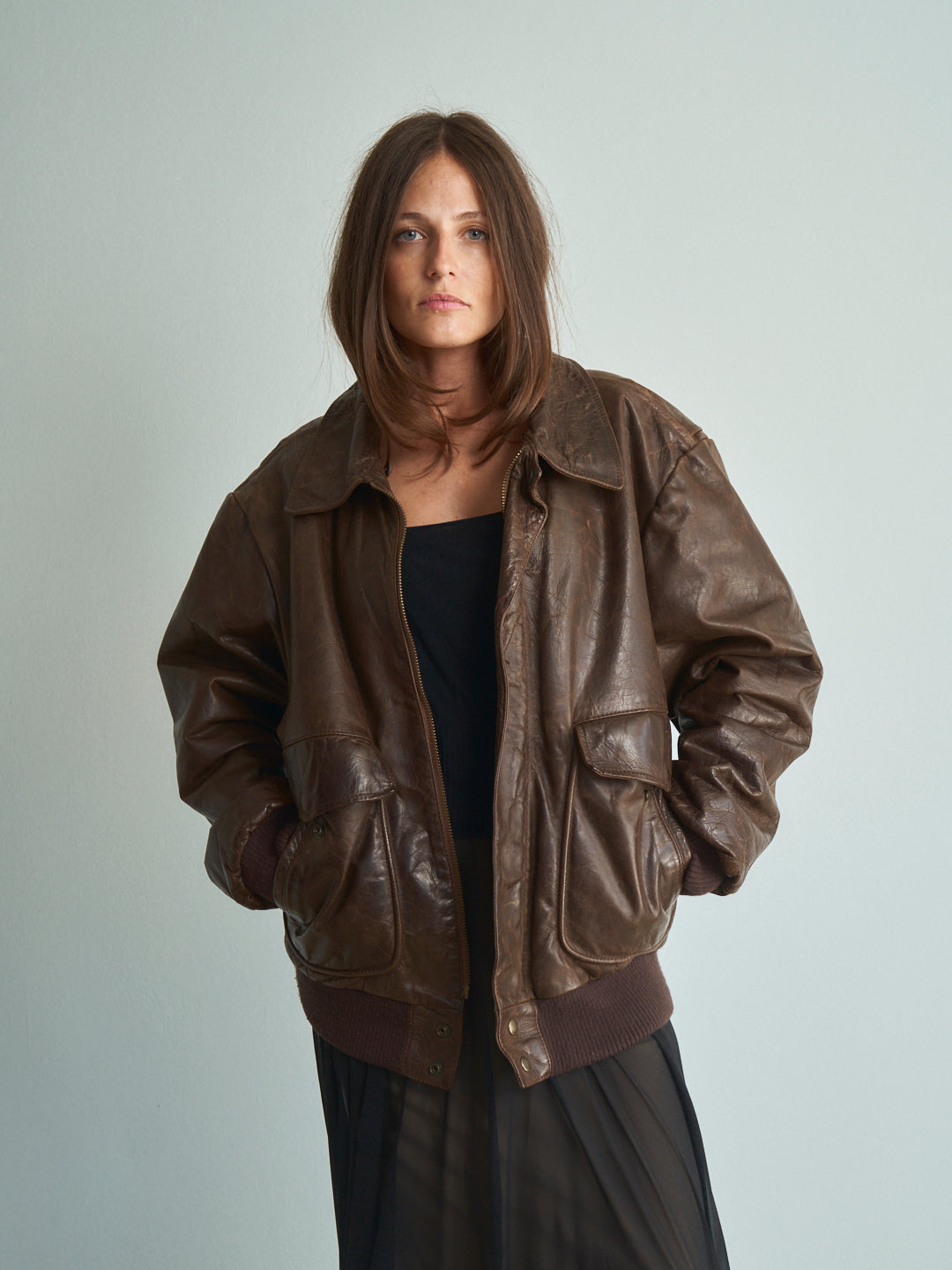 Bomber pelle marrone testa di moro