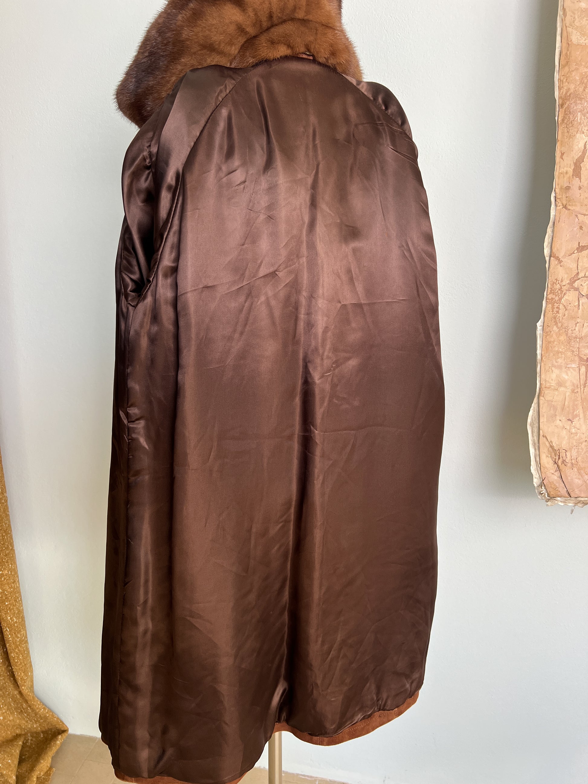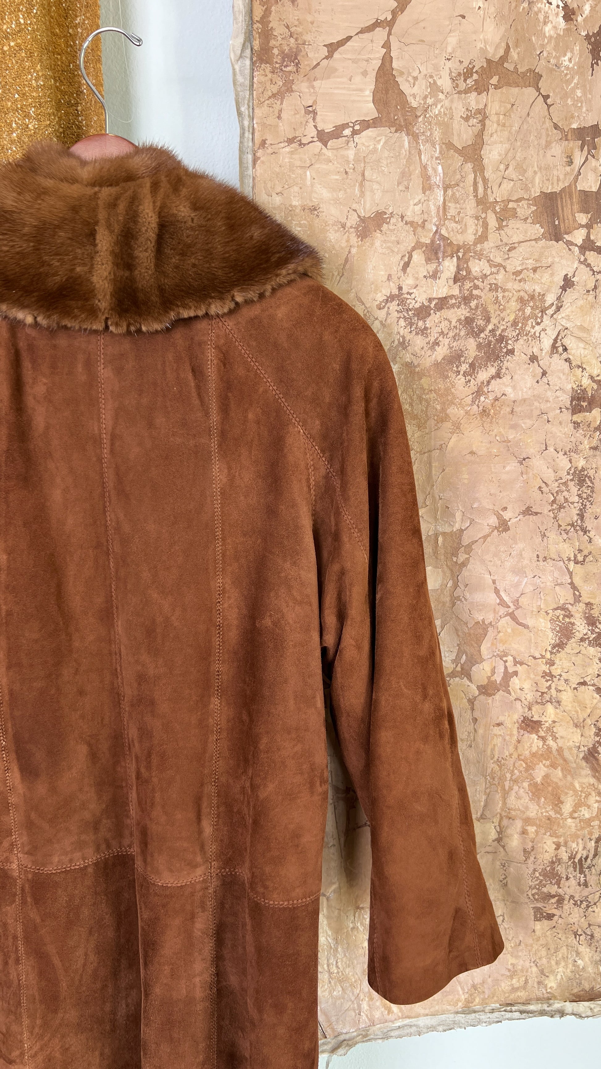 Cappotto imbottito in pelle scamosciata anni 70 con collo pelliccia rimovibile