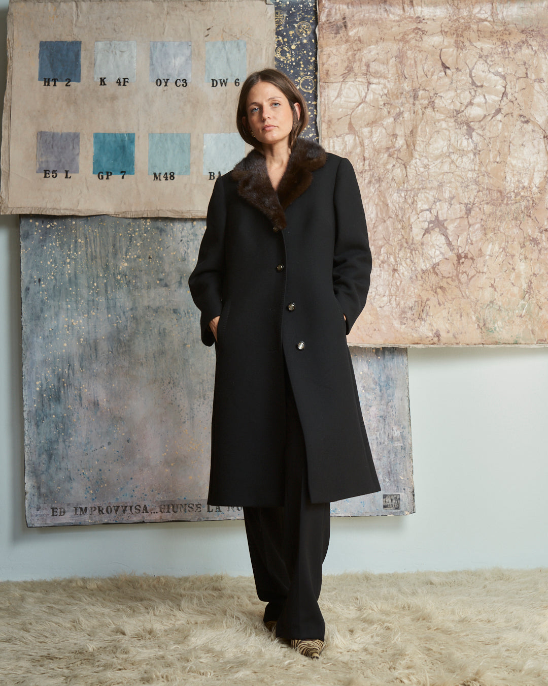 Meraviglioso cappotto in lana con collo e rever in pelliccia di visone.