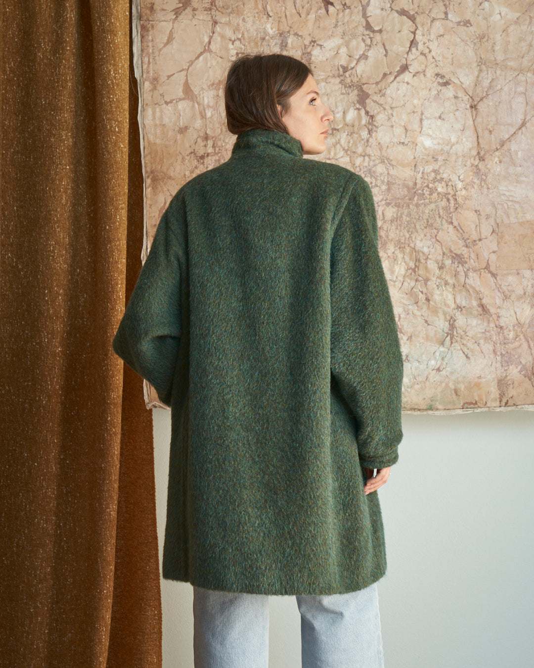 Cappotto in lana media lunghezza con chiusura bottone al collo