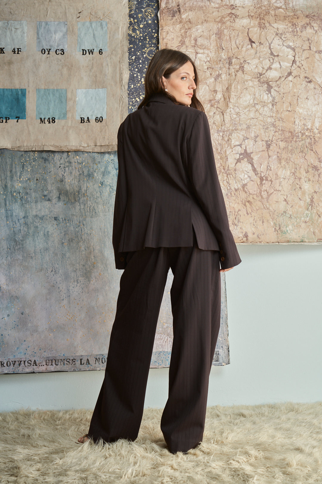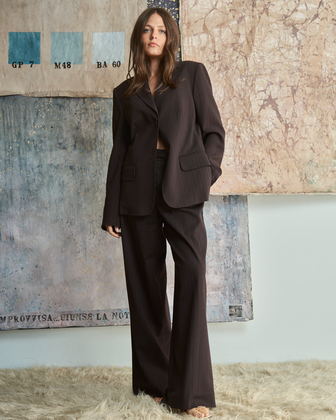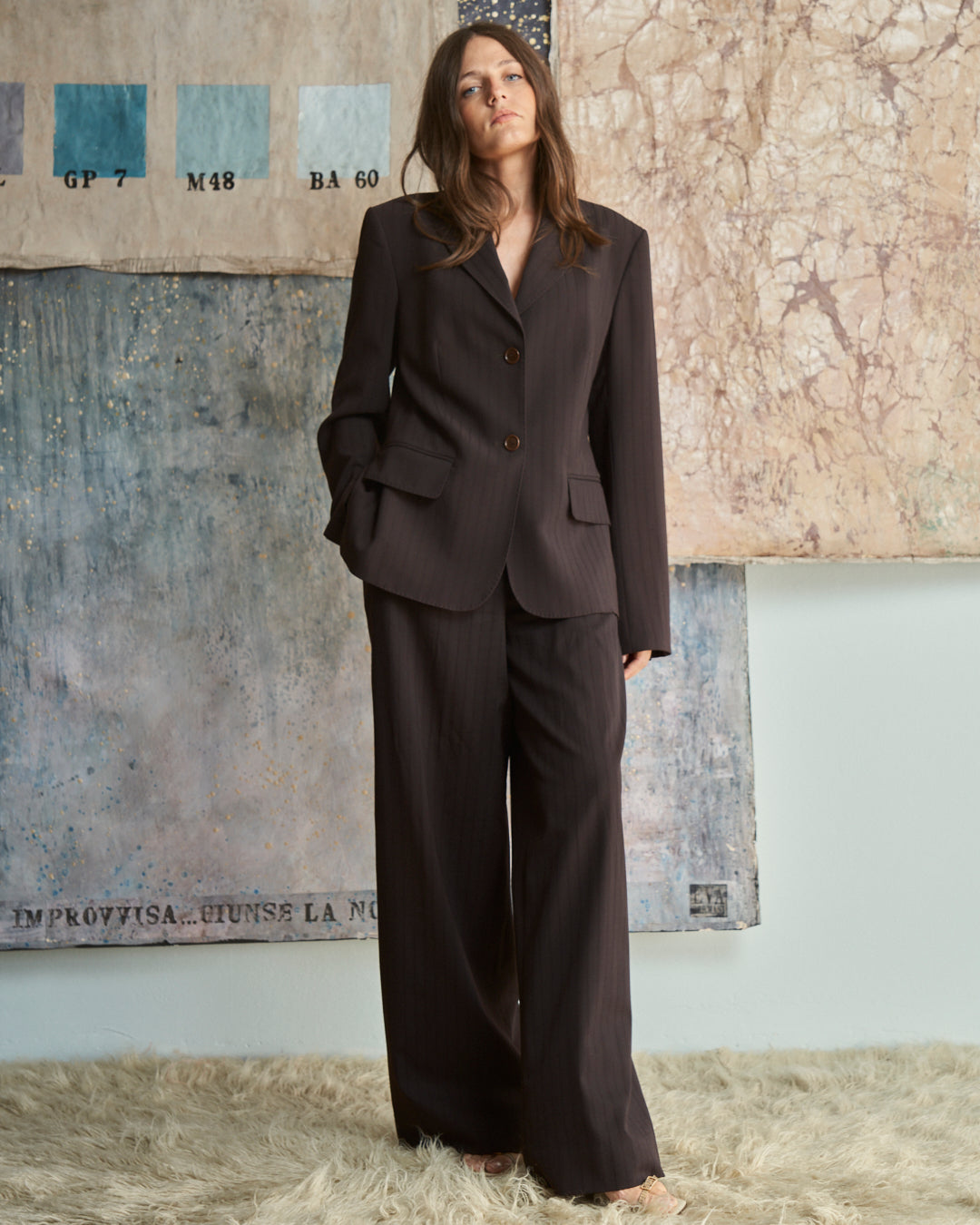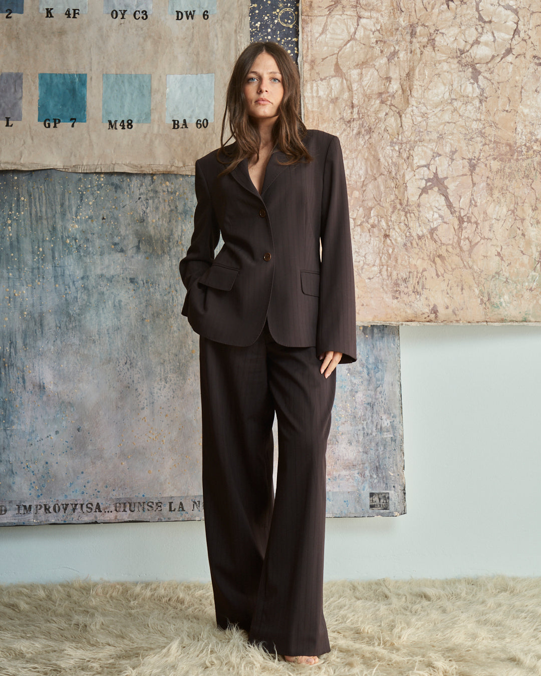 Completo J FERRE jeans in lana marrone cioccolato gessato