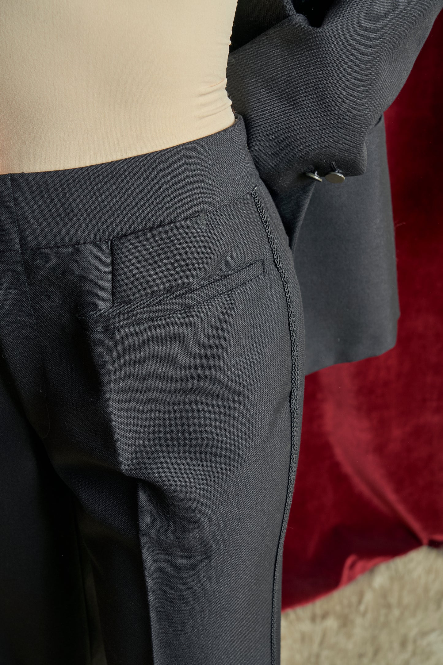 Bellissimo completo maschile anni 70 originale firmato confezioni San Remo, con elagante e sottile passamaneria davanti sui bordi collo e rever e sul fianco del pantalone.