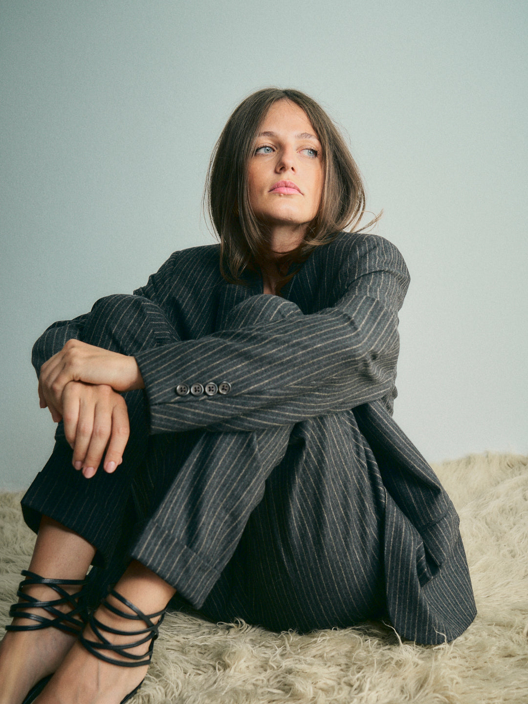 grigio con righine beige