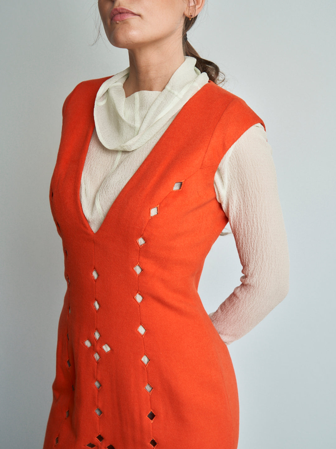 Abito Antonio Berardi fw1998\99 in lana e cachemere ricamato a tubino con spacco