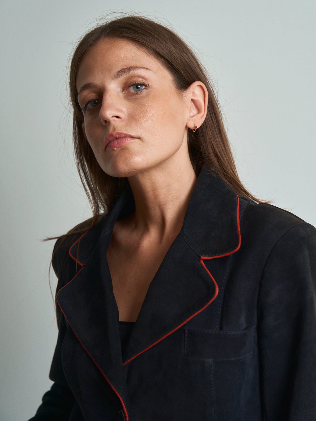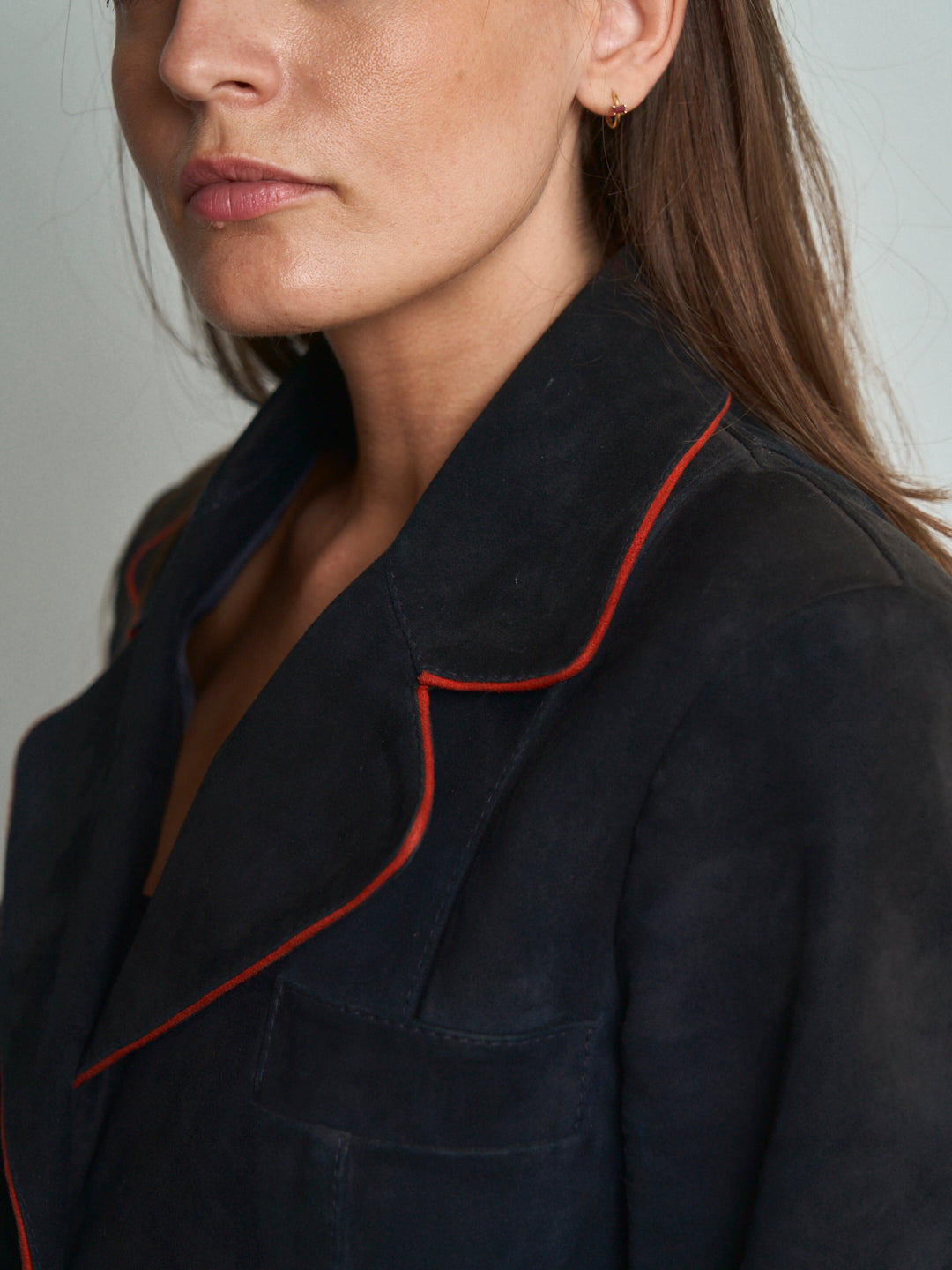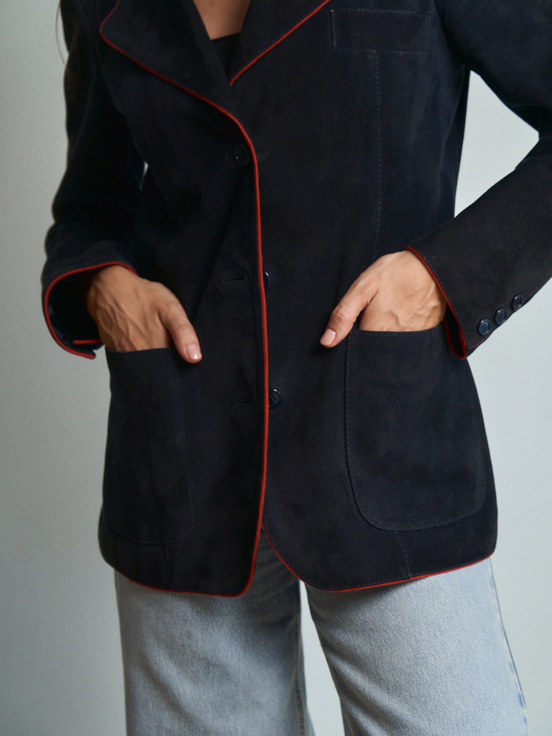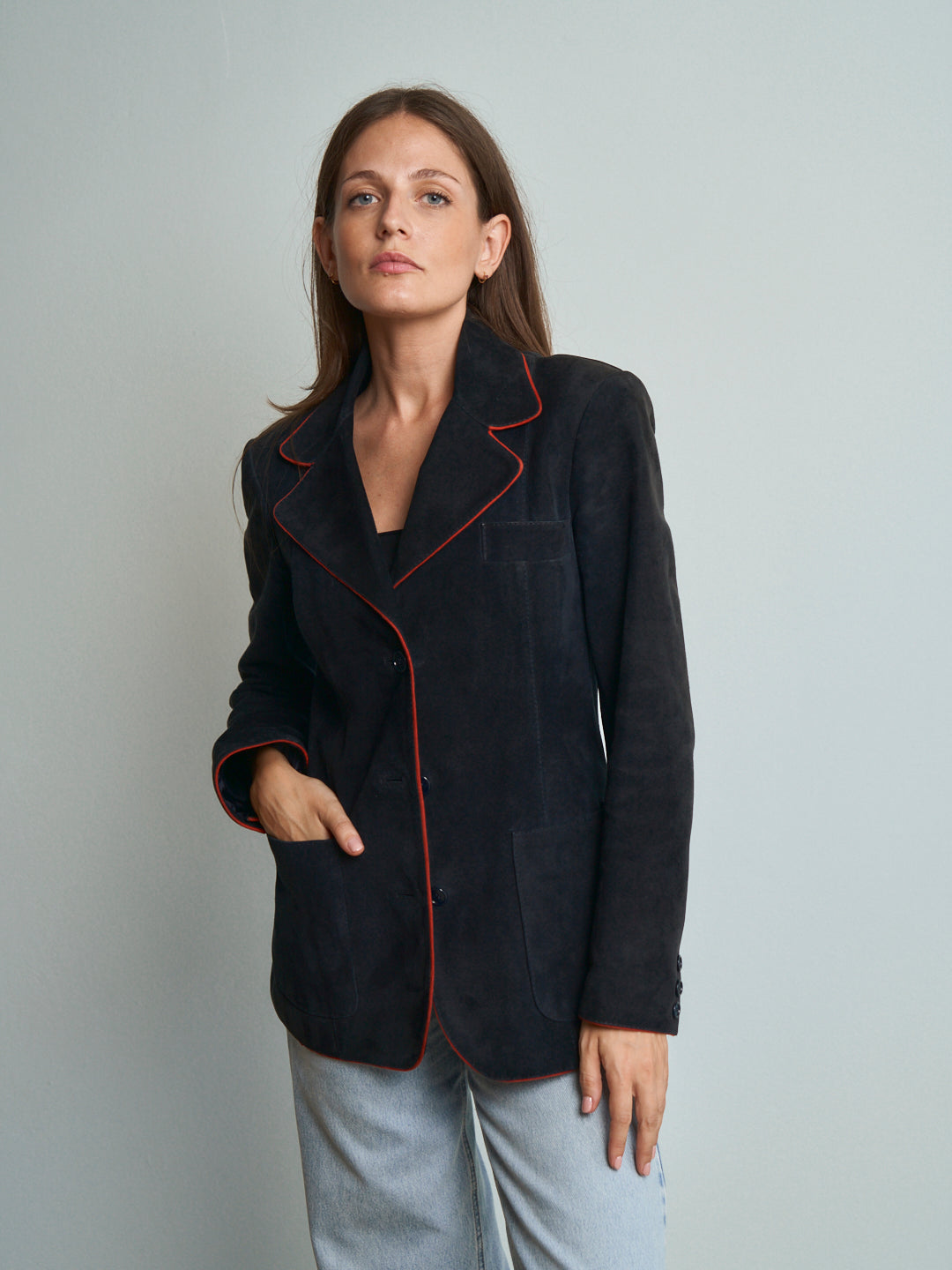 Bellissima Giacca in camoscio nera proveniente dagli anni 70 in eccellente stato.