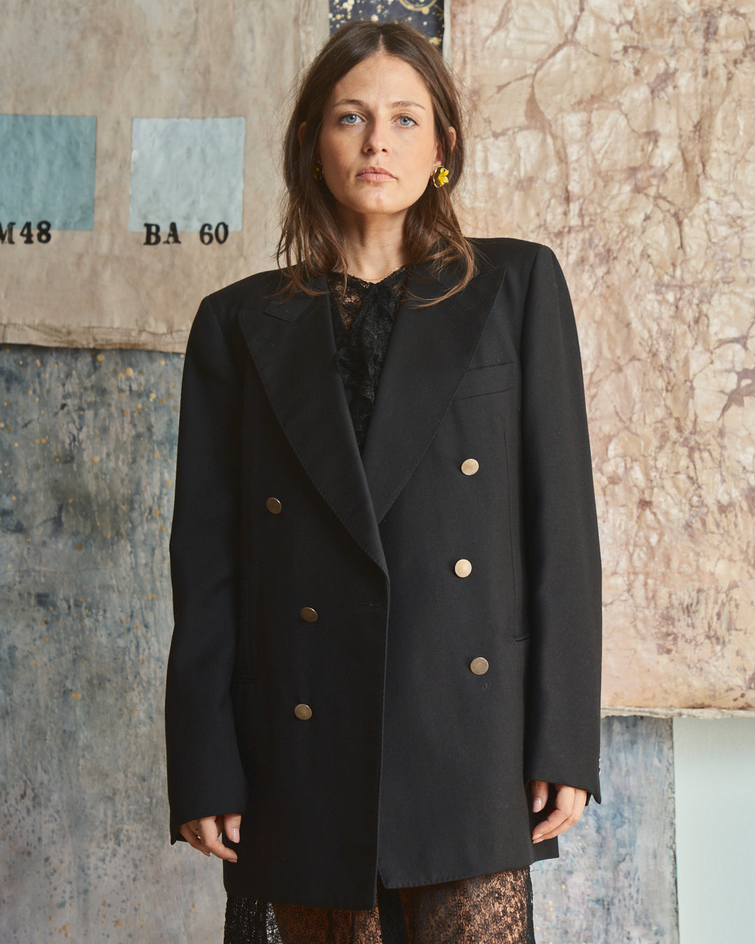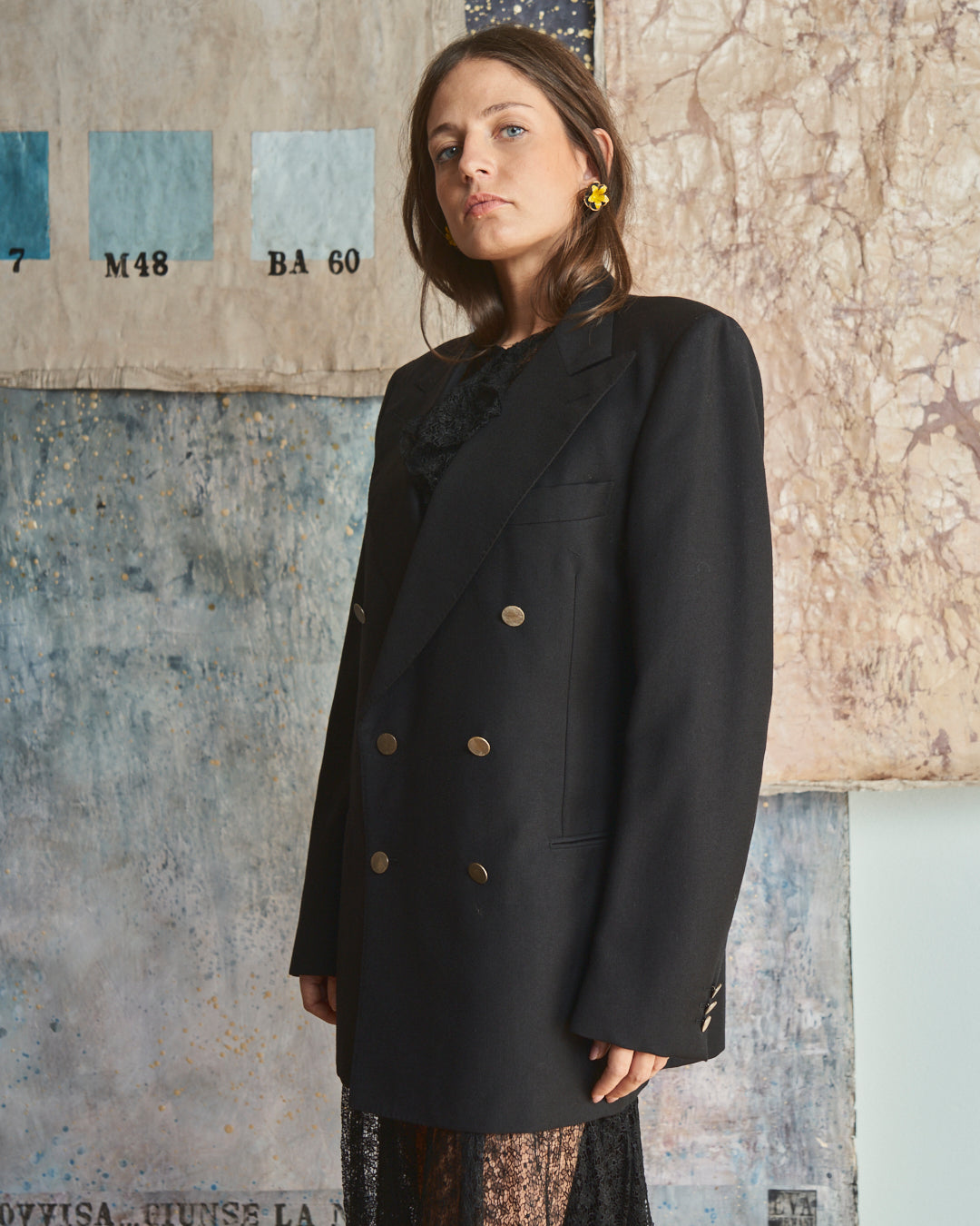 Giacca Blazer maschile doppio petto in lana spigata e bottoni in metallo