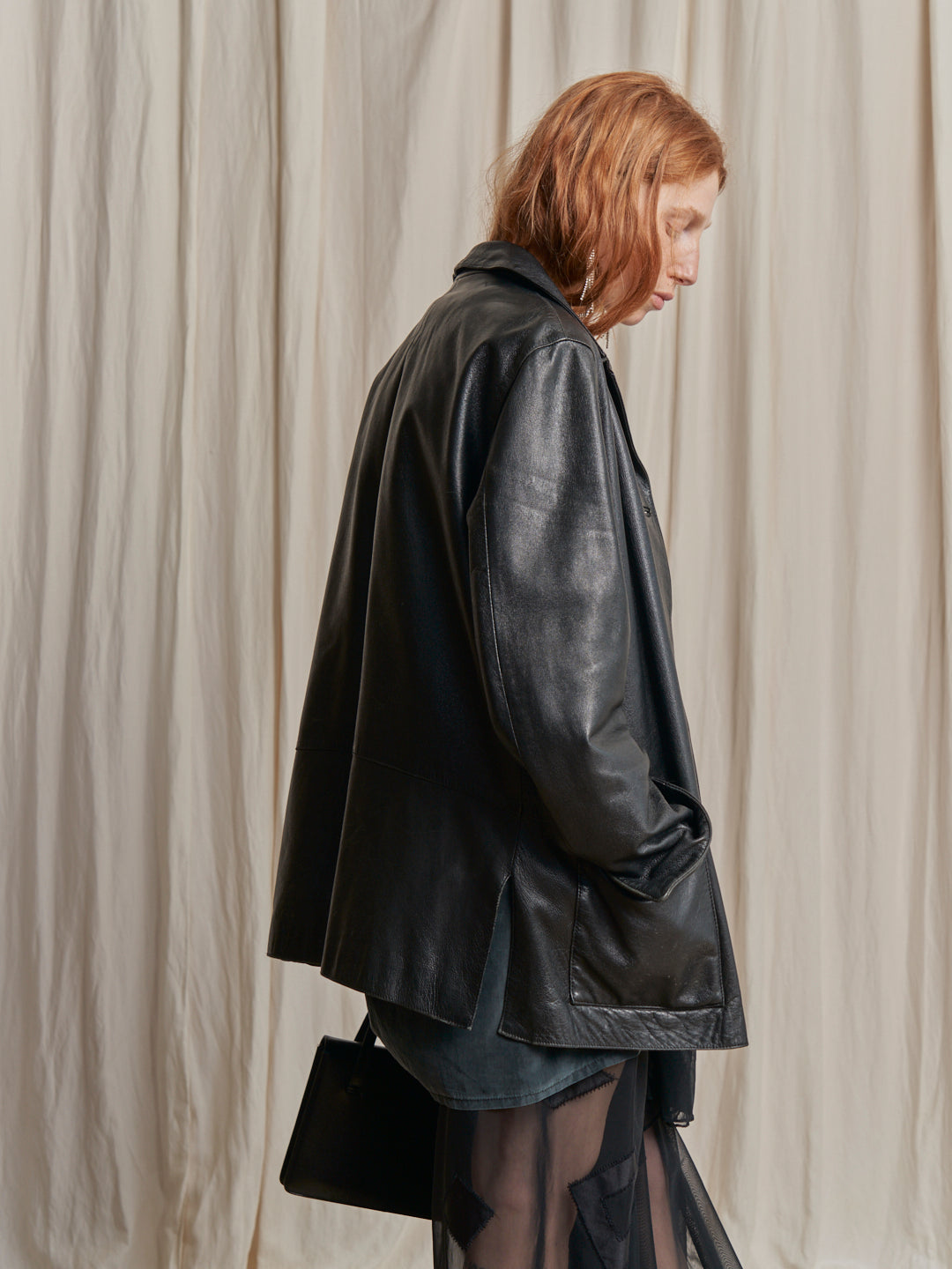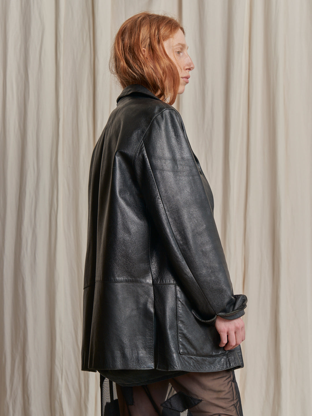 Giacca in pelle con tasche, modello semplice e molto versatile