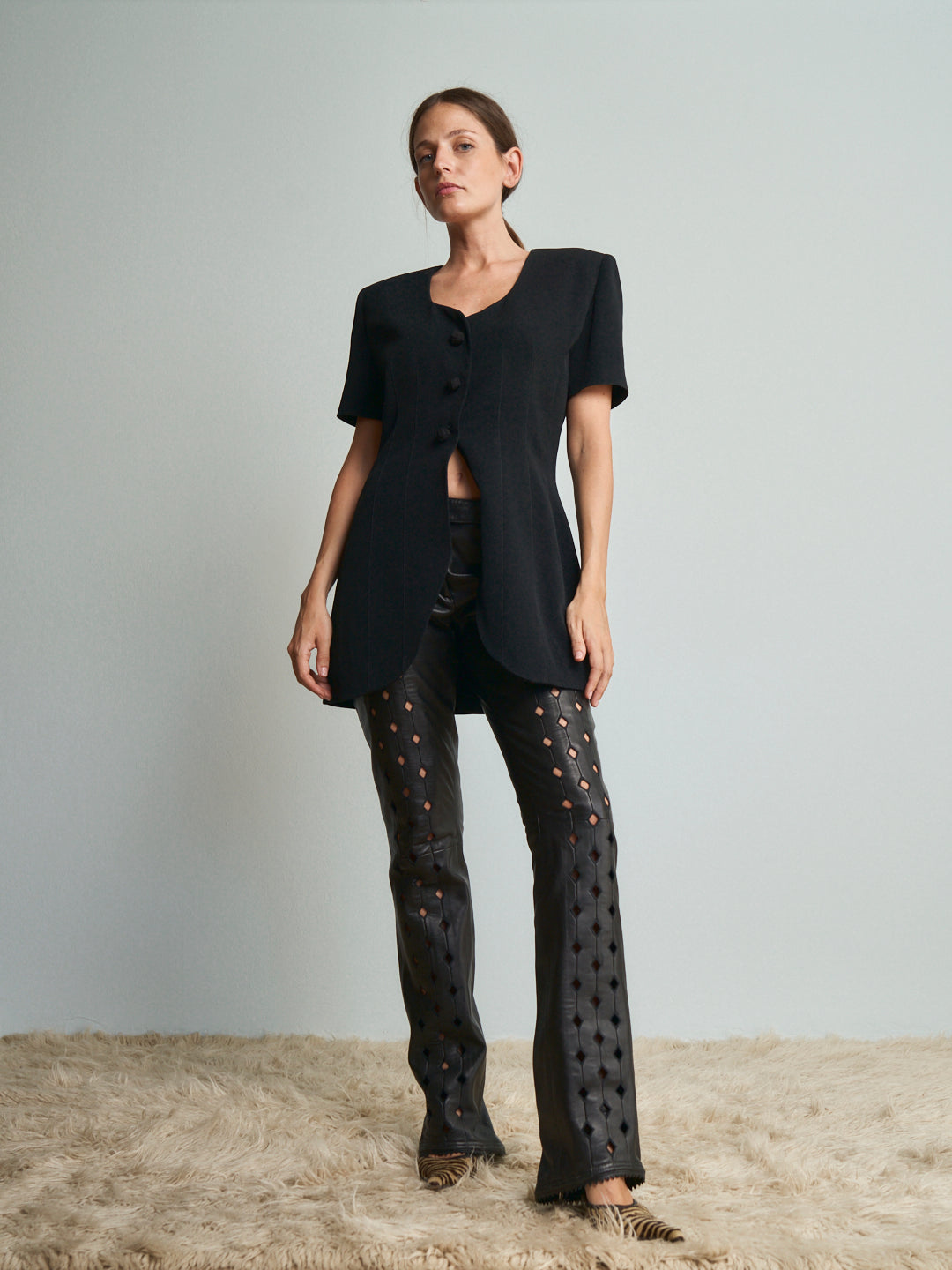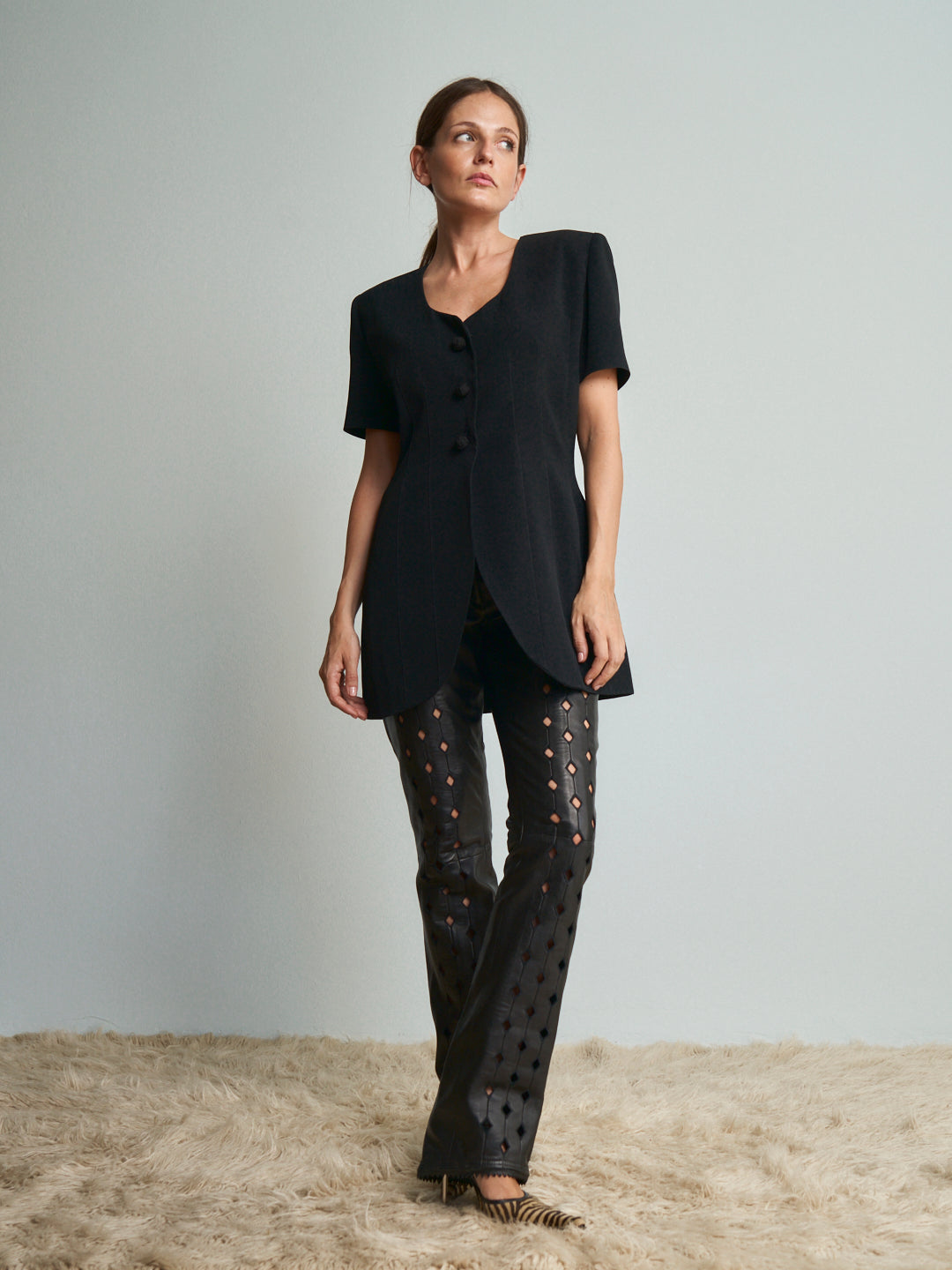 Giacca maniche corte in Crêpe con bottoni passamaneria