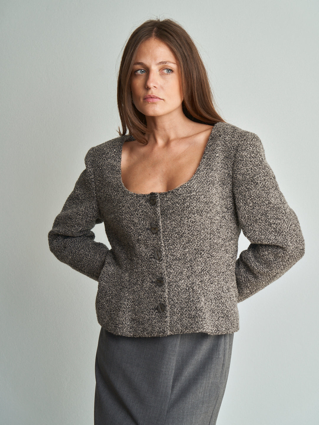 Giacca Valentino Boutique in lana vintage con bottoni texturizzati scavo collo profondo