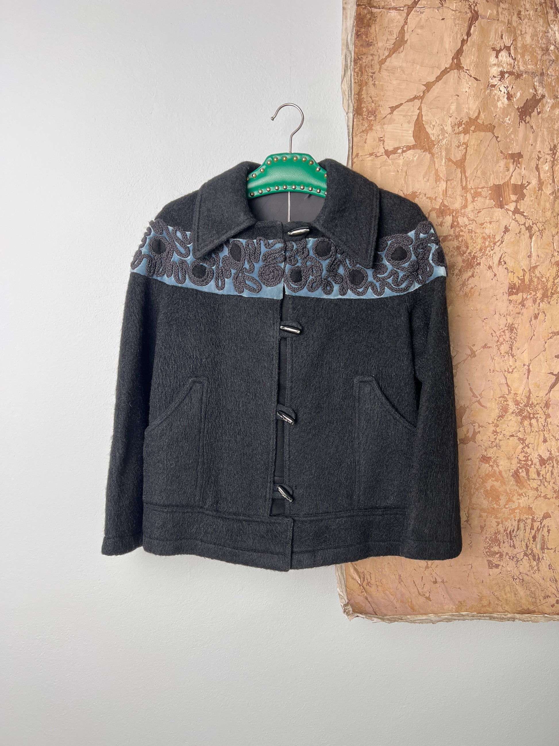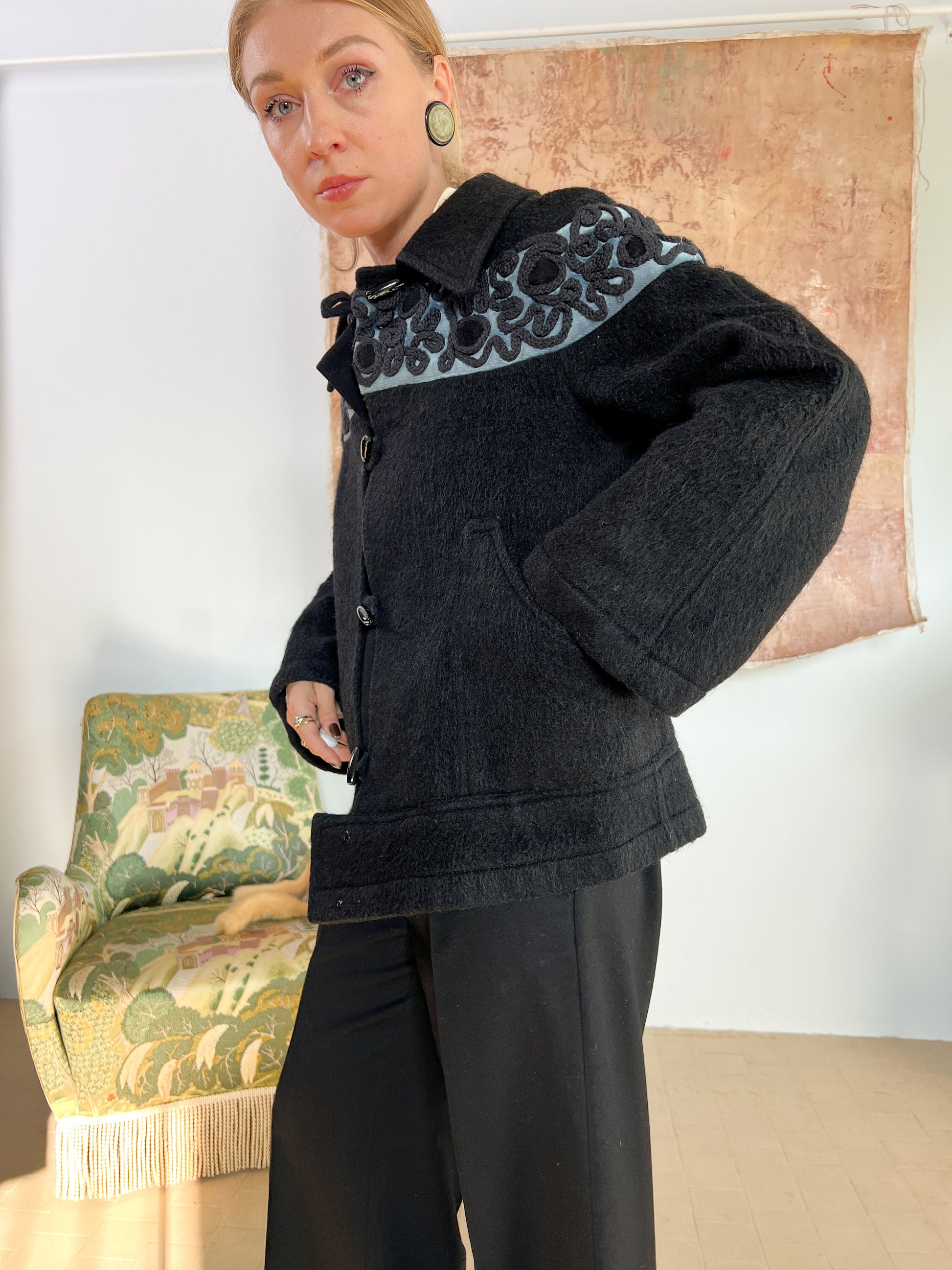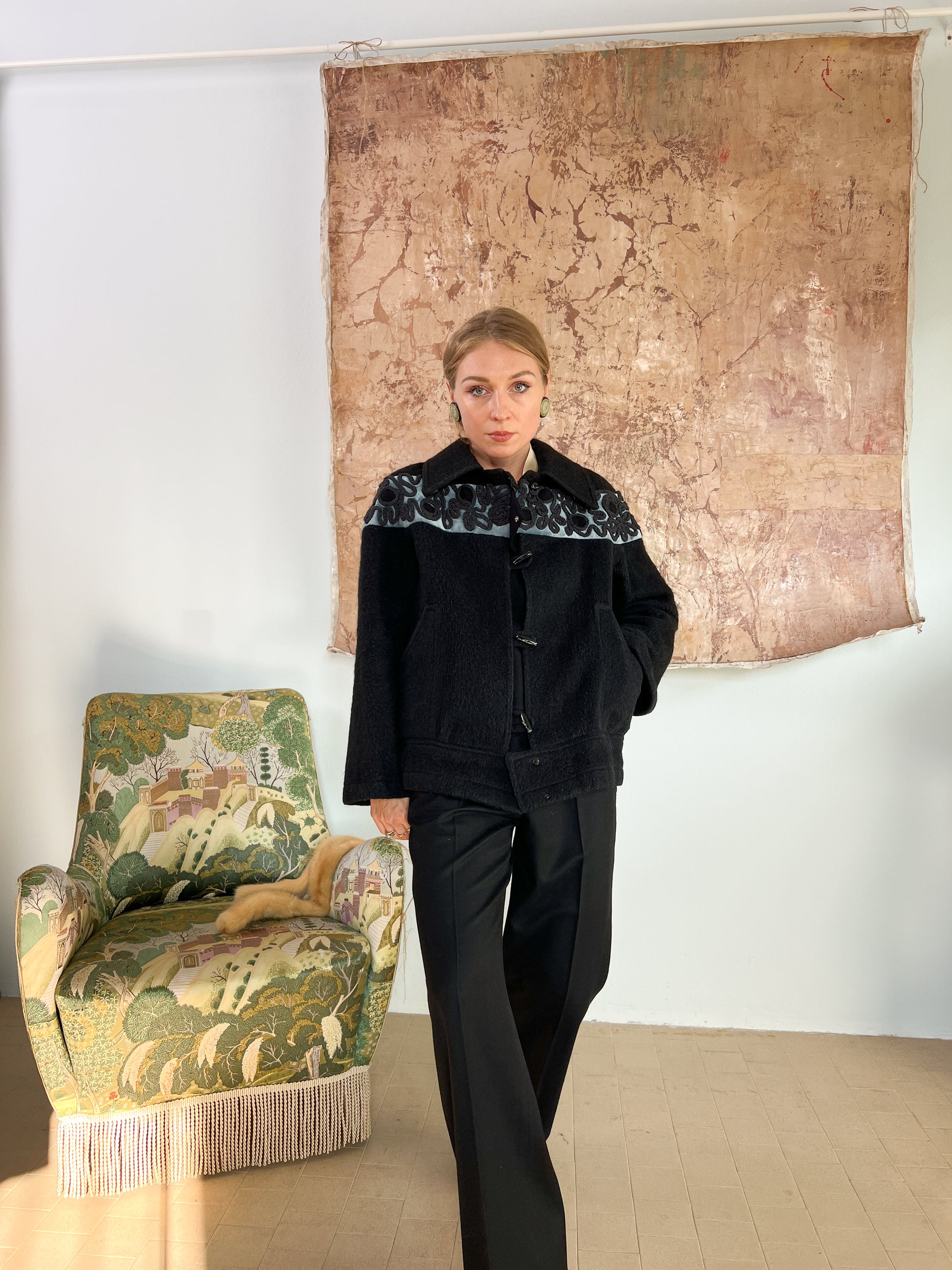 Giubbotto sartoriale ricamato a mano in lana d'alpaca