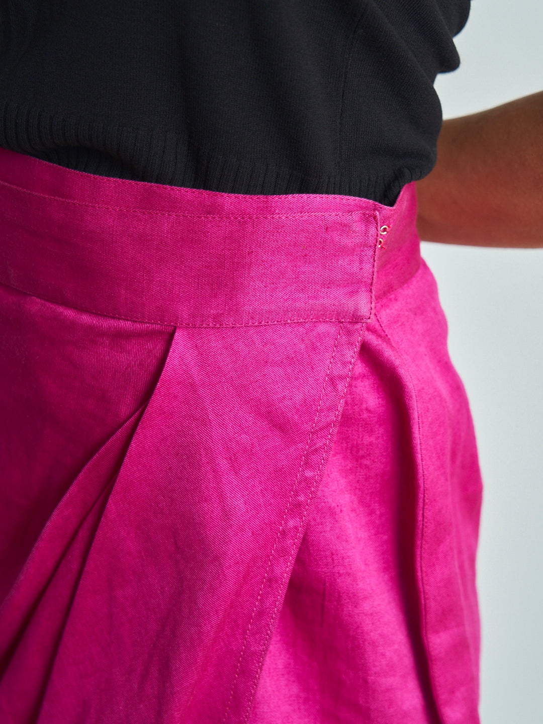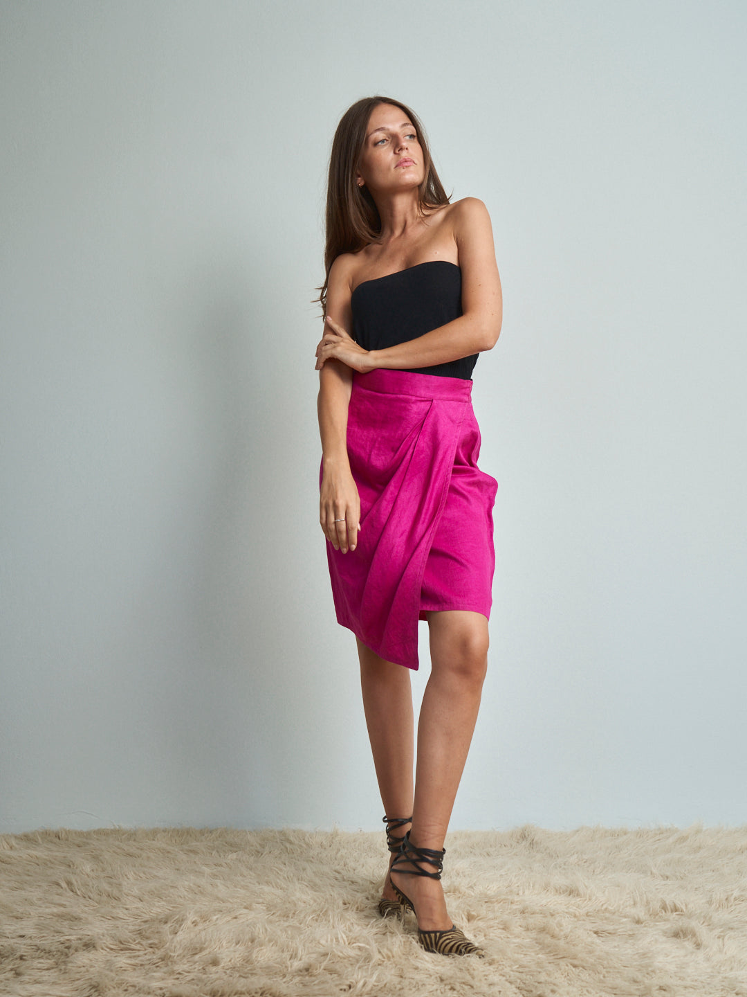Gonna in lino Gianni Versace prugna anni 80 con drappeggio tipico degli anni 80.
