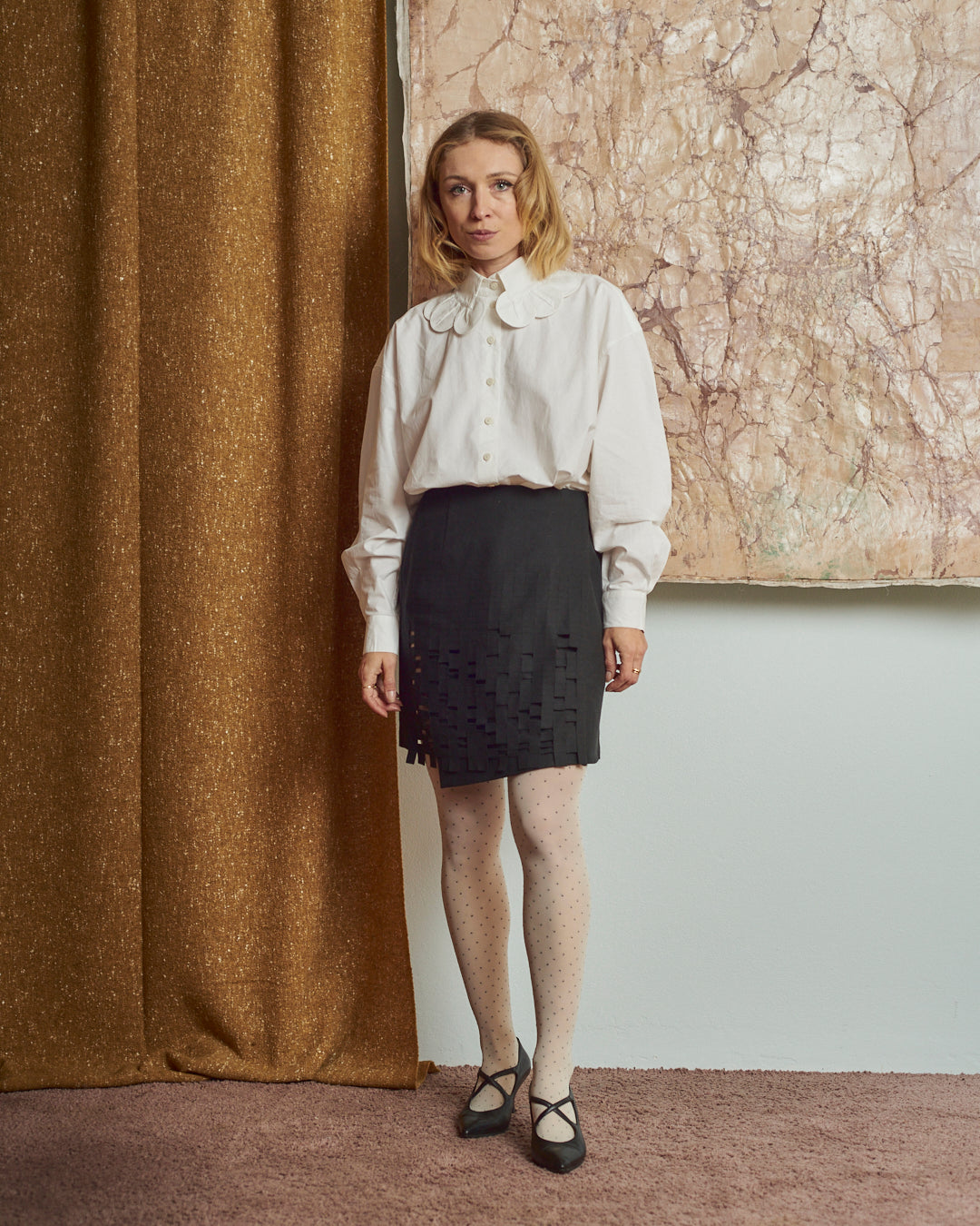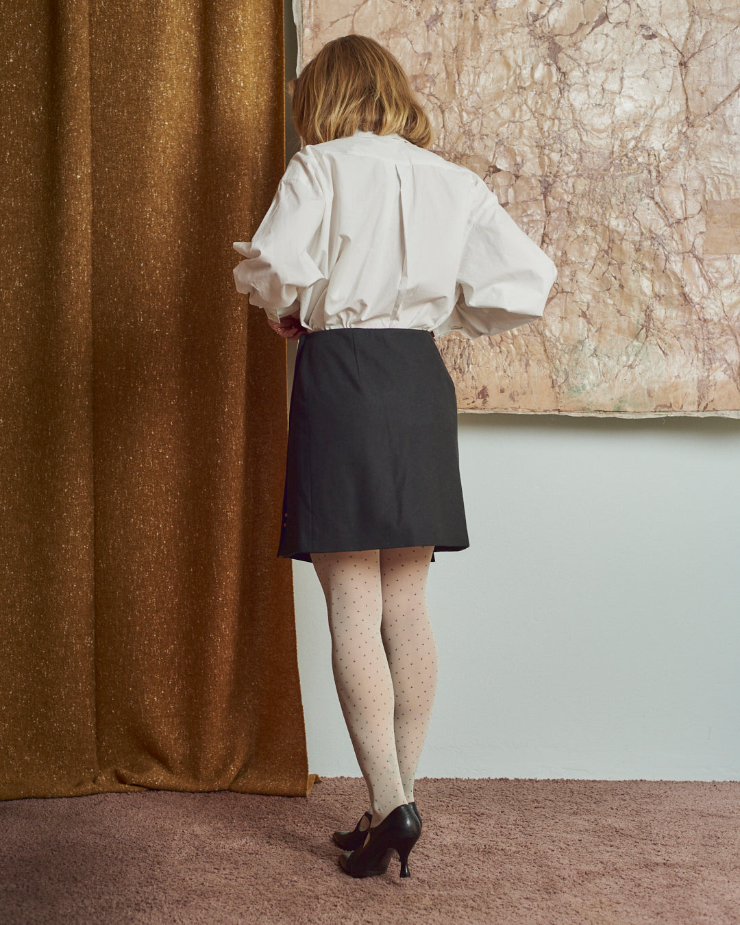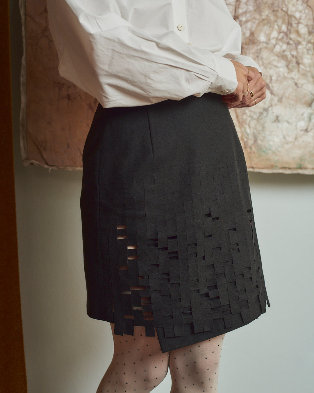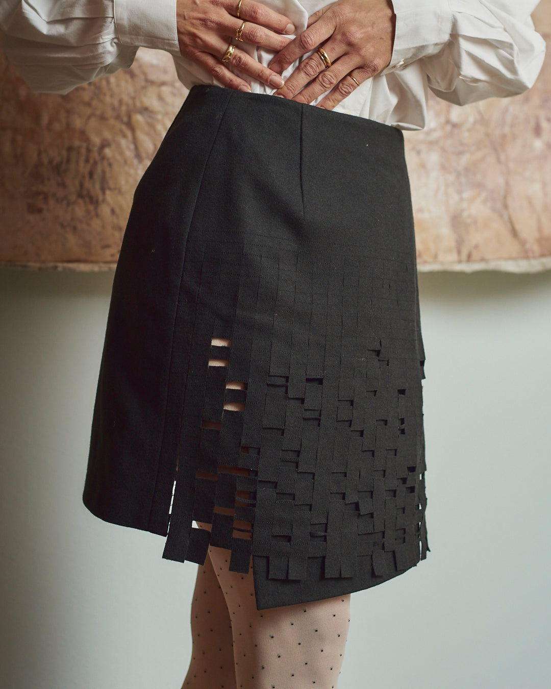Gonna in lana a portafogli Antonio Berardi fw1999\2000 con pannello a "ritagli"