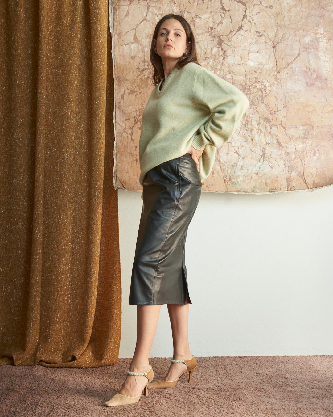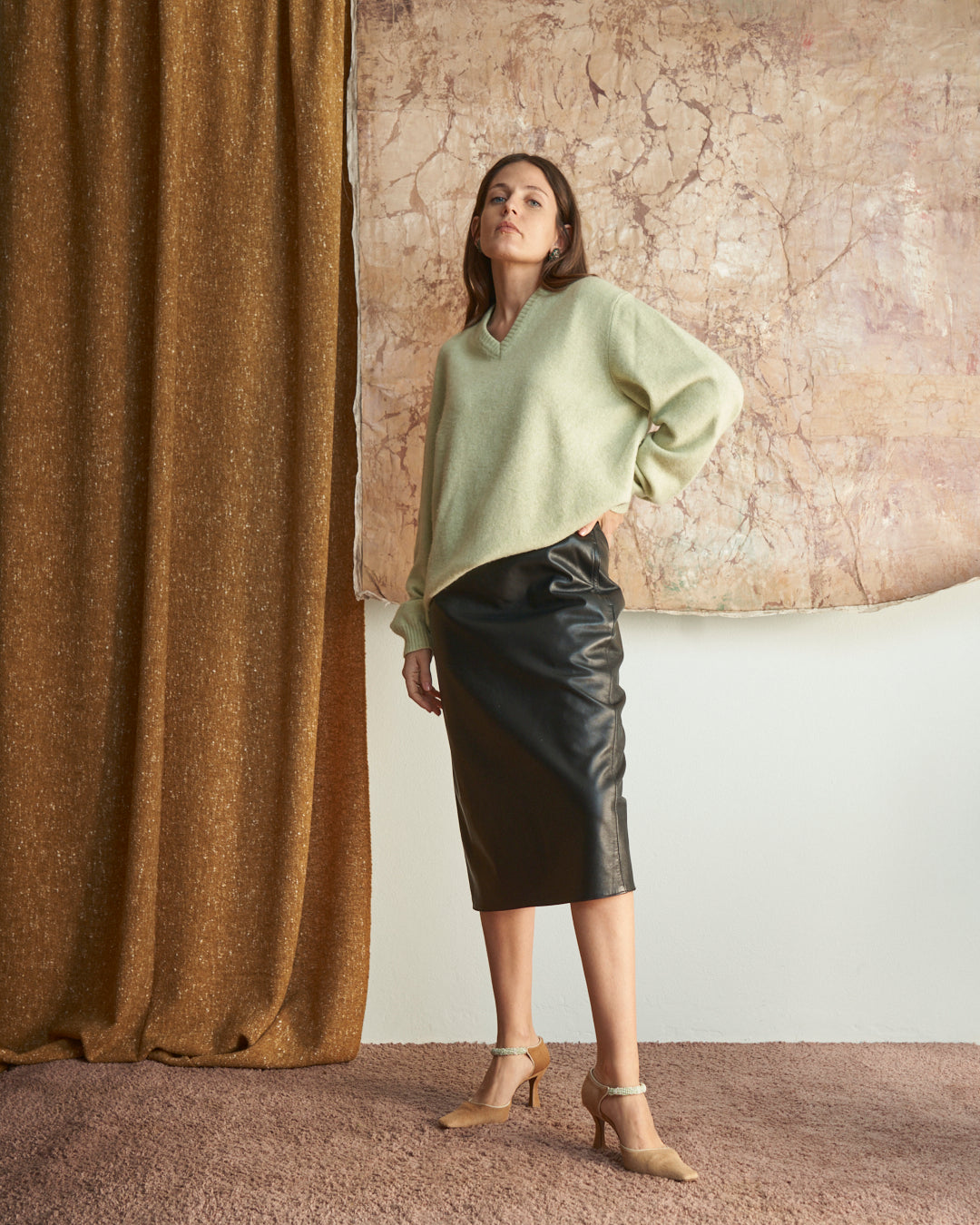 Lana e Cachemire in tonalità menta, questa maglia unisex con scavo a V rappresenta l'essenza della semplicità elegante. La fibra naturale garantisce morbidezza incomparabile e termoregolazione ideale per le stagioni intermedie. Il taglio versatile si adatta a diverse silhouette, mentre il colore delicato si abbina facilmente con il vostro guardaroba.