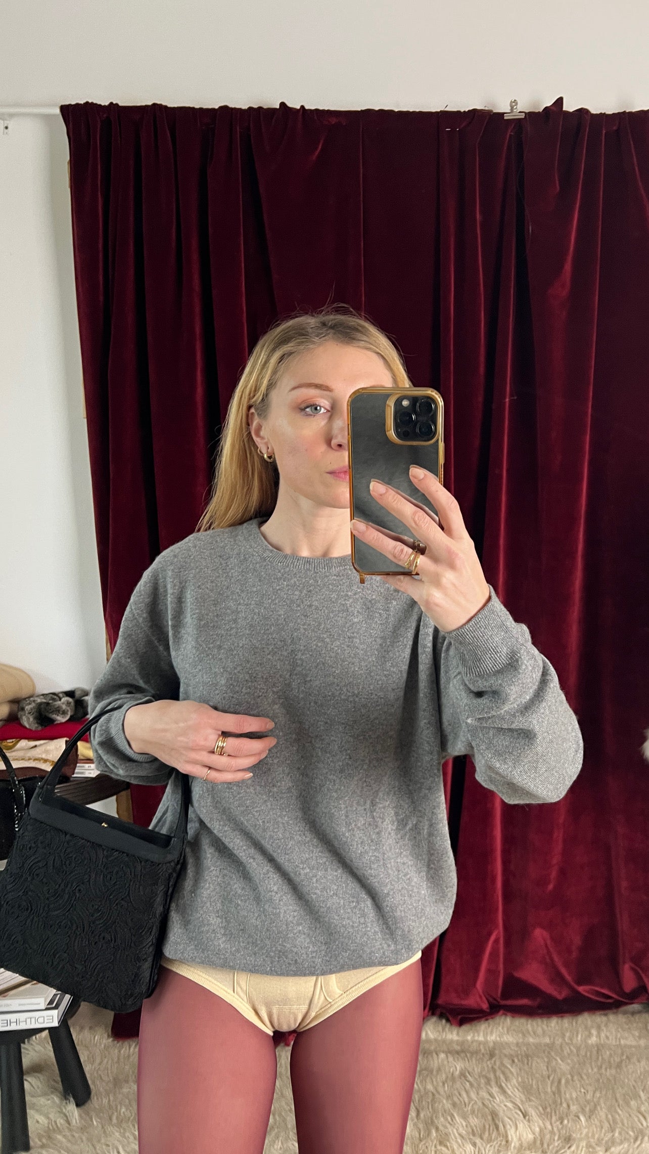 Maglione girocollo taglia over unica firmato Grigioperla, nasce come capo maschile