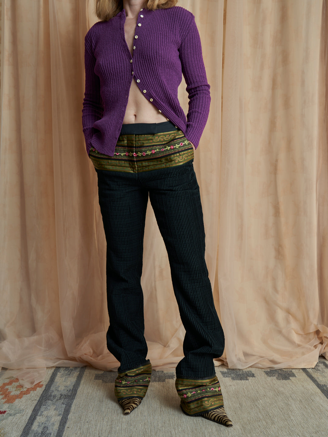 Meraviglioso pantalone Antonio Berardi in lana plissettata foderato con bordi al fondo e baschina a passamaneria con fiorellini