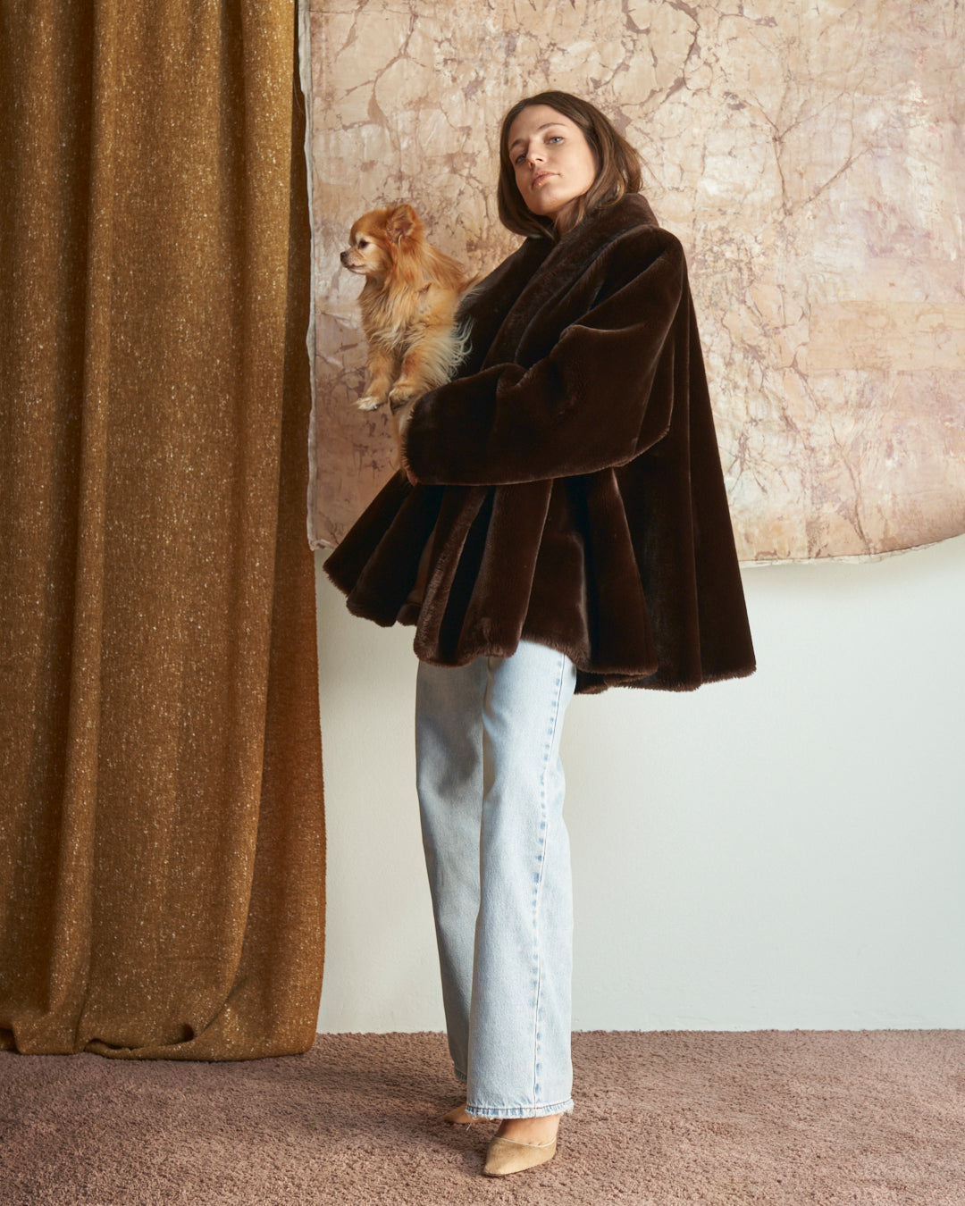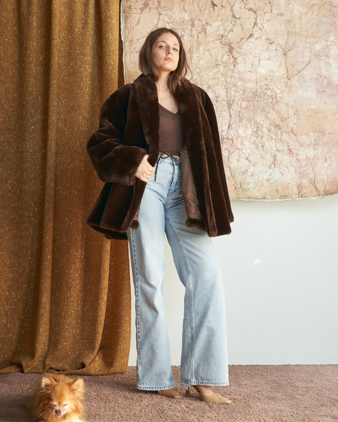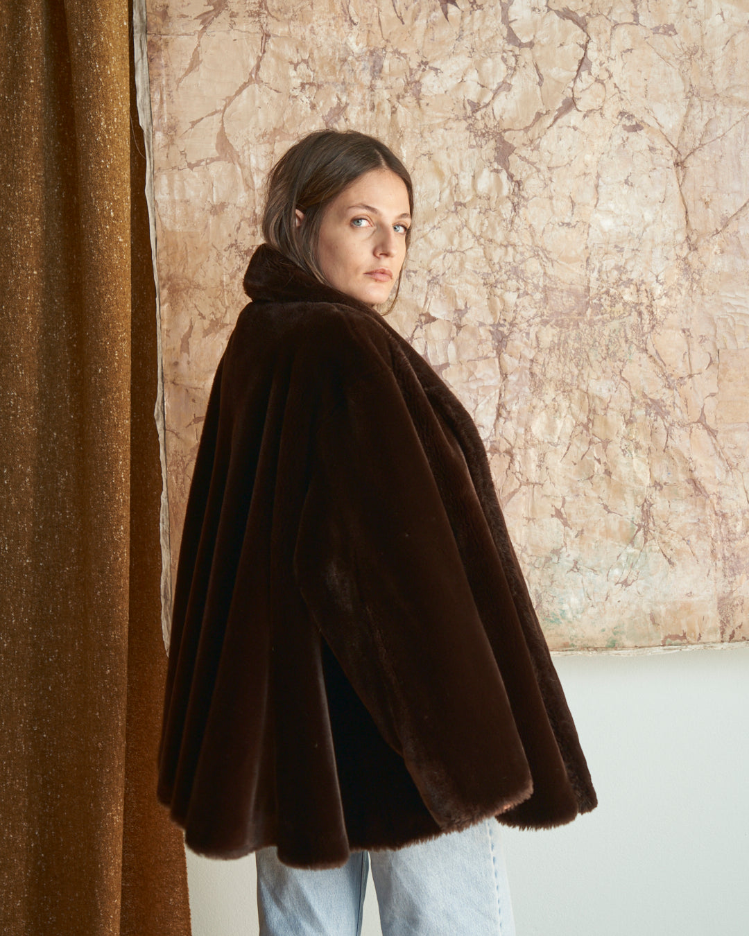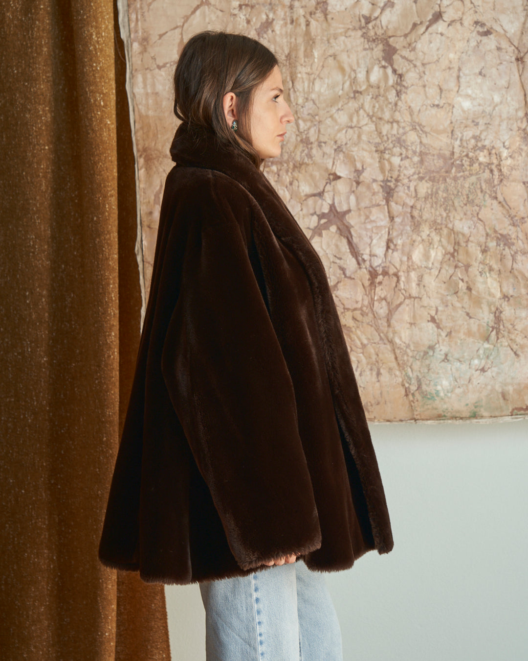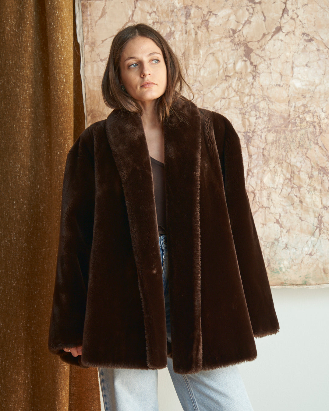 Pelliccia ecologica anni 80 marrone cioccolato a ruota
