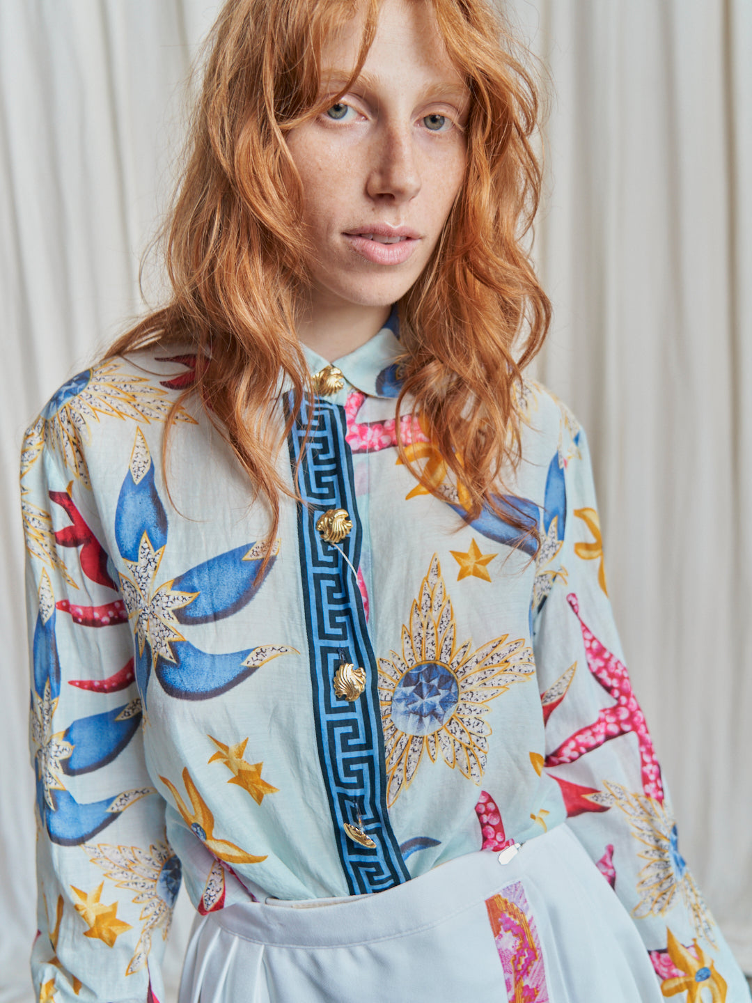 Camicia Gianni Versace Couture anni 80 in cotone e seta con bottoni dorati.