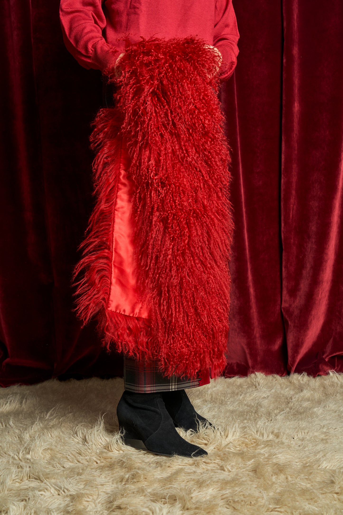 100% pelle di mongolia, fodera composizione sconosciuta.